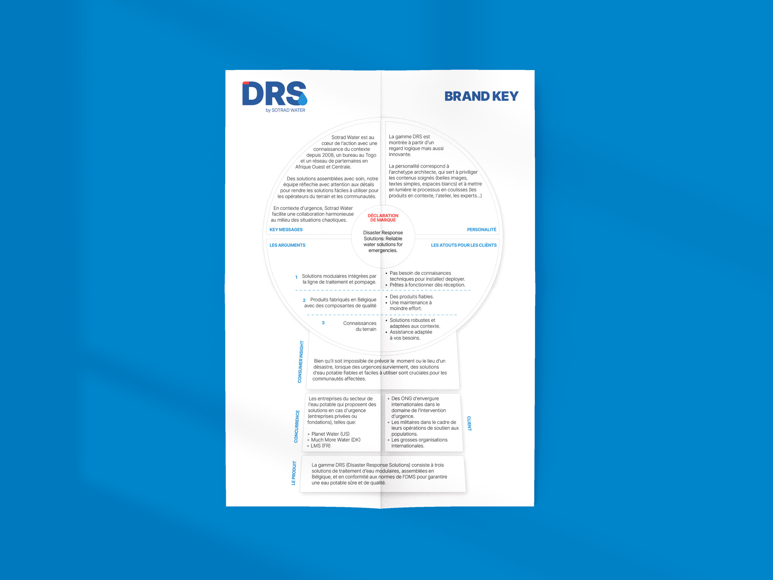 Fondée en 2008, Sotrad Water propose une gamme de solutions de traitement et de stockage de l’eau, adaptées aux besoins des populations et des industries. Dans le cadre de ses activités de réponse aux situations d’urgence (Disaster Response Solutions), Sotrad Water souhaitait lancer une nouvelle ligne de produits et a entrepris de co-créer une identité visuelle afin de positionner ses nouvelles solutions d’eau sur un marché déjà concurrentiel.