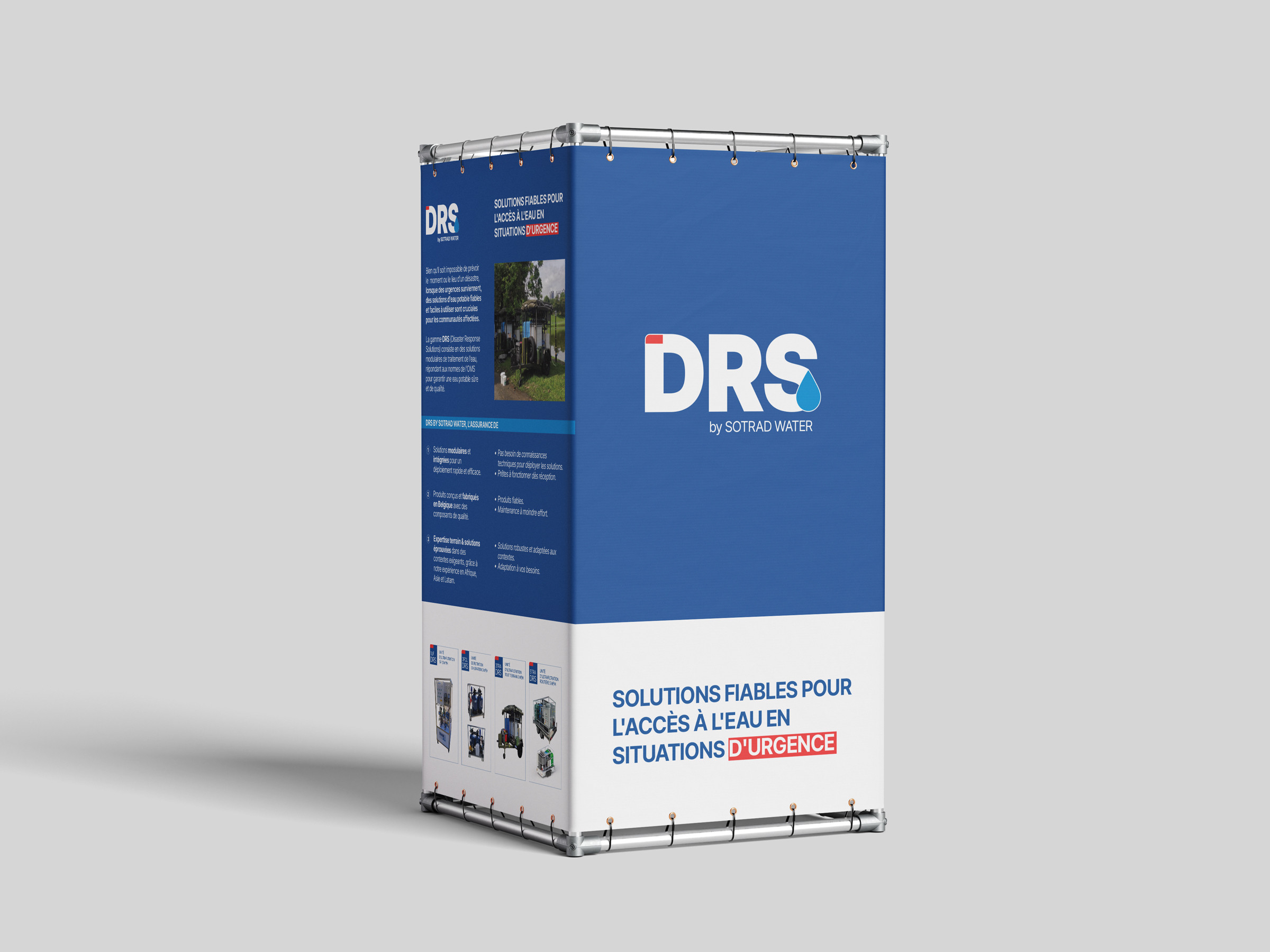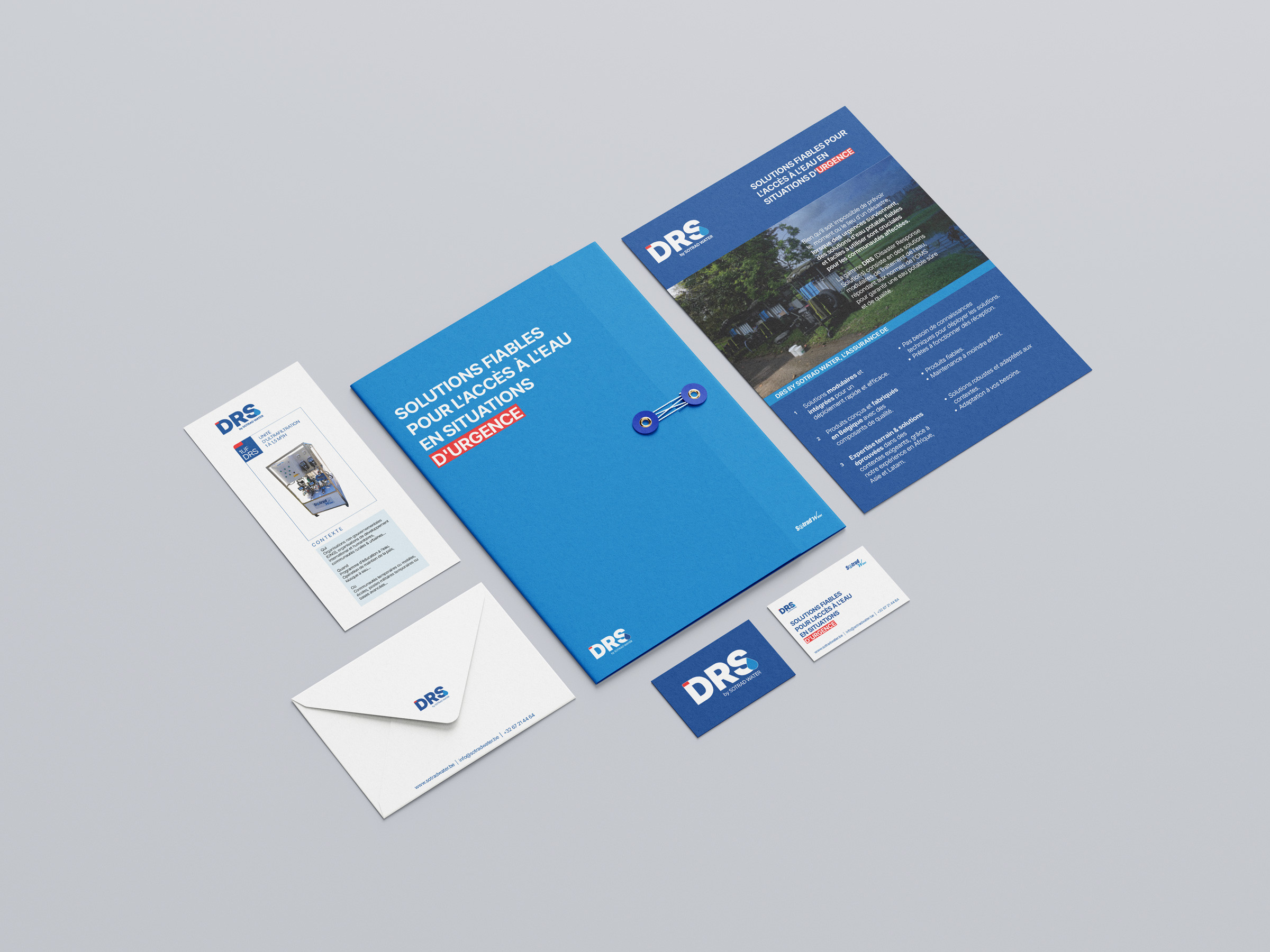 Fondée en 2008, Sotrad Water propose une gamme de solutions de traitement et de stockage de l’eau, adaptées aux besoins des populations et des industries. Dans le cadre de ses activités de réponse aux situations d’urgence (Disaster Response Solutions), Sotrad Water souhaitait lancer une nouvelle ligne de produits et a entrepris de co-créer une identité visuelle afin de positionner ses nouvelles solutions d’eau sur un marché déjà concurrentiel.